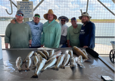 Everyone left the lodge at 5AM Saturday morning to go to the docks at the Matagorda Marina and meet their fishing guide for the weekend. Our two guides were Capt. Fletcher and Capt. Landon. Around 6AM we loaded up on the boats and headed to an oyster reef to go wade fishing for speckled trout. Four hours later we were on our way back with everyone’s limit of trout, one redfish, and a flounder. After the morning trip it was time to relax and get rested up for the next day’s trip.